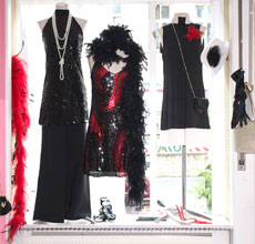 Wir haben unser Angebot speziell für die Events im Stil der 20er Jahre, wie z.B. für die exklusiven Boheme Sauvage Partys, vergrößert. Fransen, Pailletten und Federn schmücken die Kleider und Accessoires. Wir beraten euch gern ausführlich und stilsicher; auch Tips für Haare und Make-up geben wir mit auf den Weg. Nach Absprache ist es auch möglich, festliche Bekleidung auszuleihen.